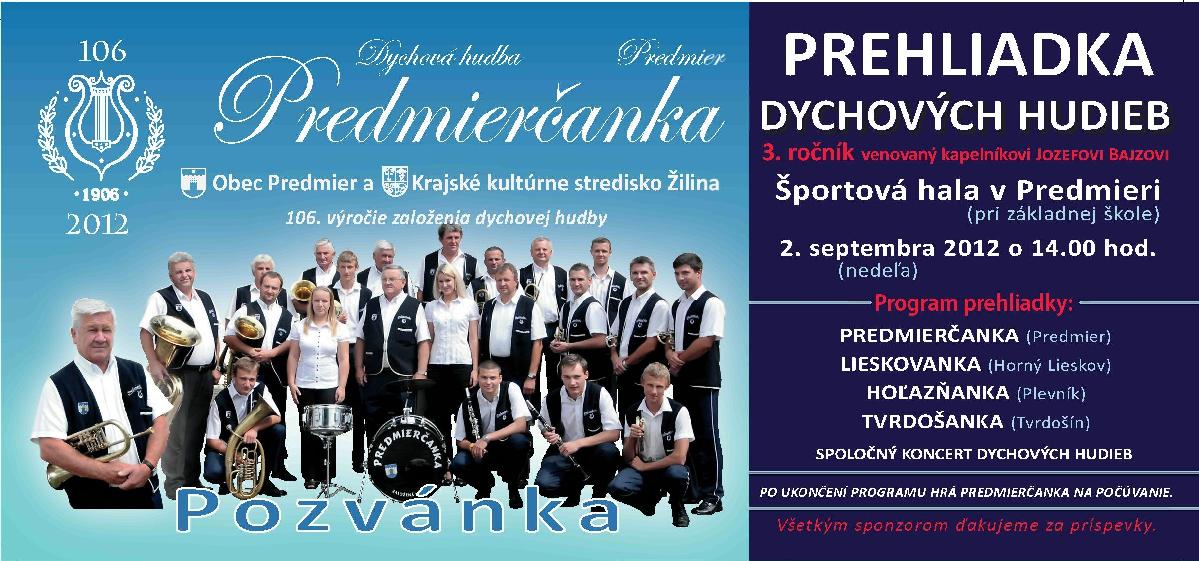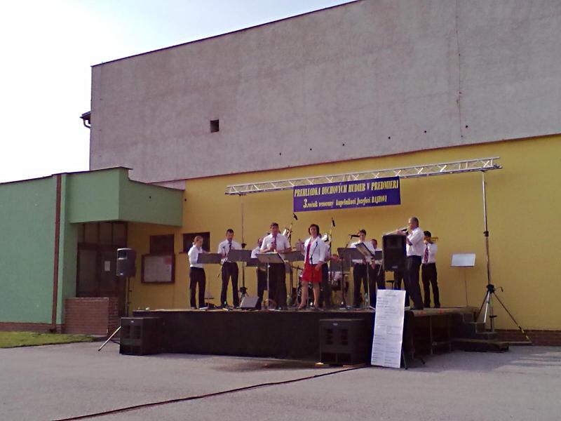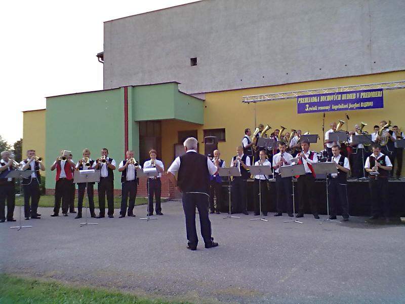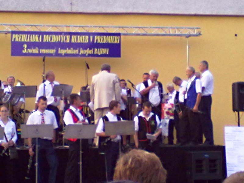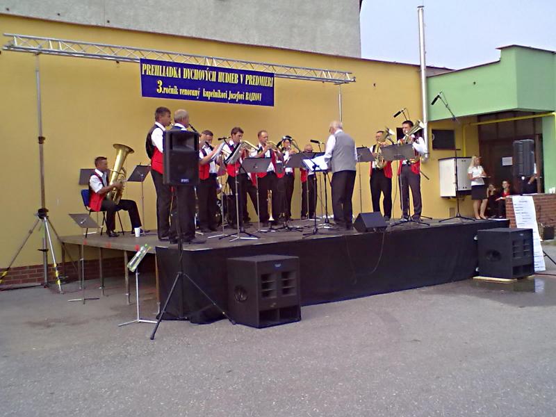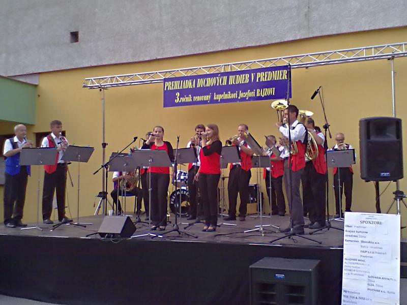 Nedeľné popoludnie 2. septembra patrilo v Žilinskom kraji 3. ročníku festivalu dychových hudieb venovaný kapelníkovi Jozefovi Bajzovi, a to v obci Predmier, kde už 106 rokov pôsobí dychová hudba Predmierčanka. Tento festival pred tromi rokmi iniciovala, ako spolok Združenia dychových hudieb Slovenska, DH Predmierčanka spolu s obcou Predmier a v tomto ročníku sa k usporiadateľom pridalo aj Krajské kultúrne stredisko v Žiline. Festivalu som sa na pozvanie za ZDHS zúčastnil aj spolu s predsedom ZDHS Žilinského kraja Ing. Danielom Kolejákom, ktorý na festival priviedol aj svoju dychovú hudbu Tvrdošanku z Tvrdošína na Orave. Festival sa konal na voľnom priestranstve pred športovou halou v areáli základnej školy obce a pred jeho zahájením to vyzeralo, že ho počasie premiestni do športovej haly. Na šťastie sa počasie umúdrilo a vydržalo síce bez slniečka ale aj bez dažďa a v pomerne teplej klíme po celú dobu.