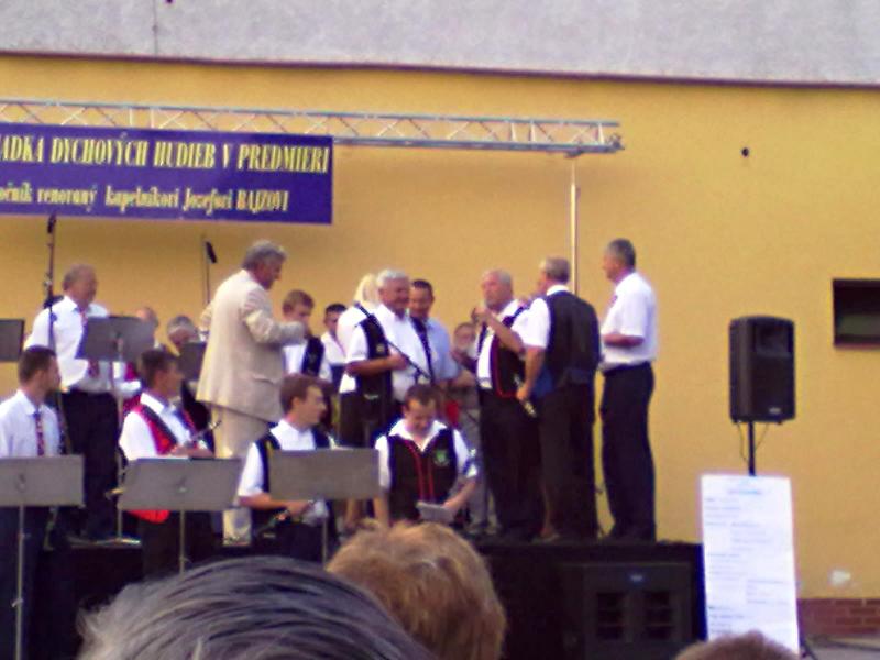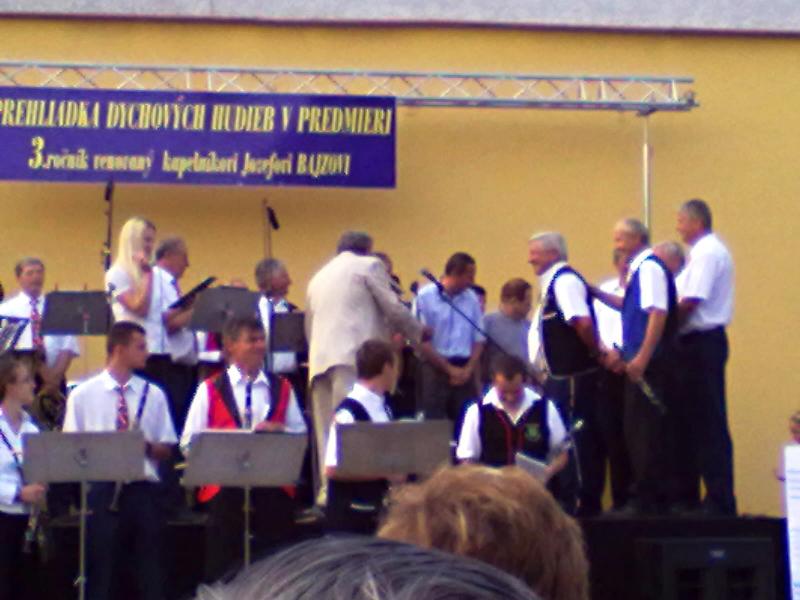 V závere vystúpenia DH Predmierčanky som bol vyzvaný moderátorkou k príhovoru a odovzdaniu pripravených ocenení pre jednotlivých členov zúčastnených dychových hudieb, ktorí sa svojou zanietenou prácou zaslúžili o udržiavanie a rozvoj tradícií jednotlivých dychových hudieb. Ocenenia pamätnou plaketou ZDHS som odovzdal členom DH Predmierčanky p. Petrovi Bajzovi, ktorý sa stará o výchovu mladej generácie v tejto dychovej hudbe a najstaršiemu členovi DH p. Ladislavovi Kučerovi za cieľavedomú prácu pri zachovaní tradície a rozvoji DH Predmierčanky z Predmiera. Členom DH Hoľazňanky z Plevníka-Drieňového, ktorá oslávila 15. výročie svojho vzniku, kapelníkovi p. Mariánovi Turčánimu a organizačnému vedúcemu p. Pavlovi Delinovi za za cieľavedomú prácu pri zachovaní tradície a rozvoji DH Holazňanky z obce Plevník-Drieňové.Nakoniec členom DH Lieskovanky z Horného Lieskova a to: kapelníkovi p. Ladislavovi Košútovi a starostovi obce a tenoristovi Ing. Andrejovi Tordovi. za cieľavedomú prácu a pomoc pri zachovaní tradície a rozvoji DH Lieskovanky z Horného Lieskova.