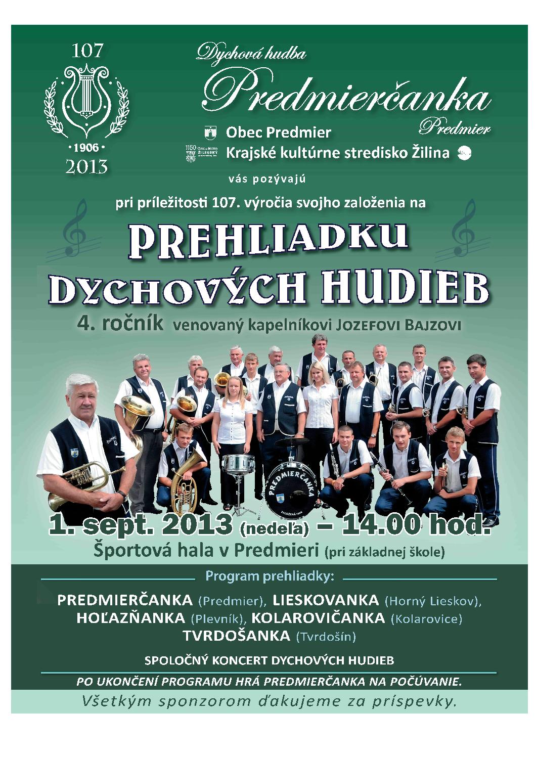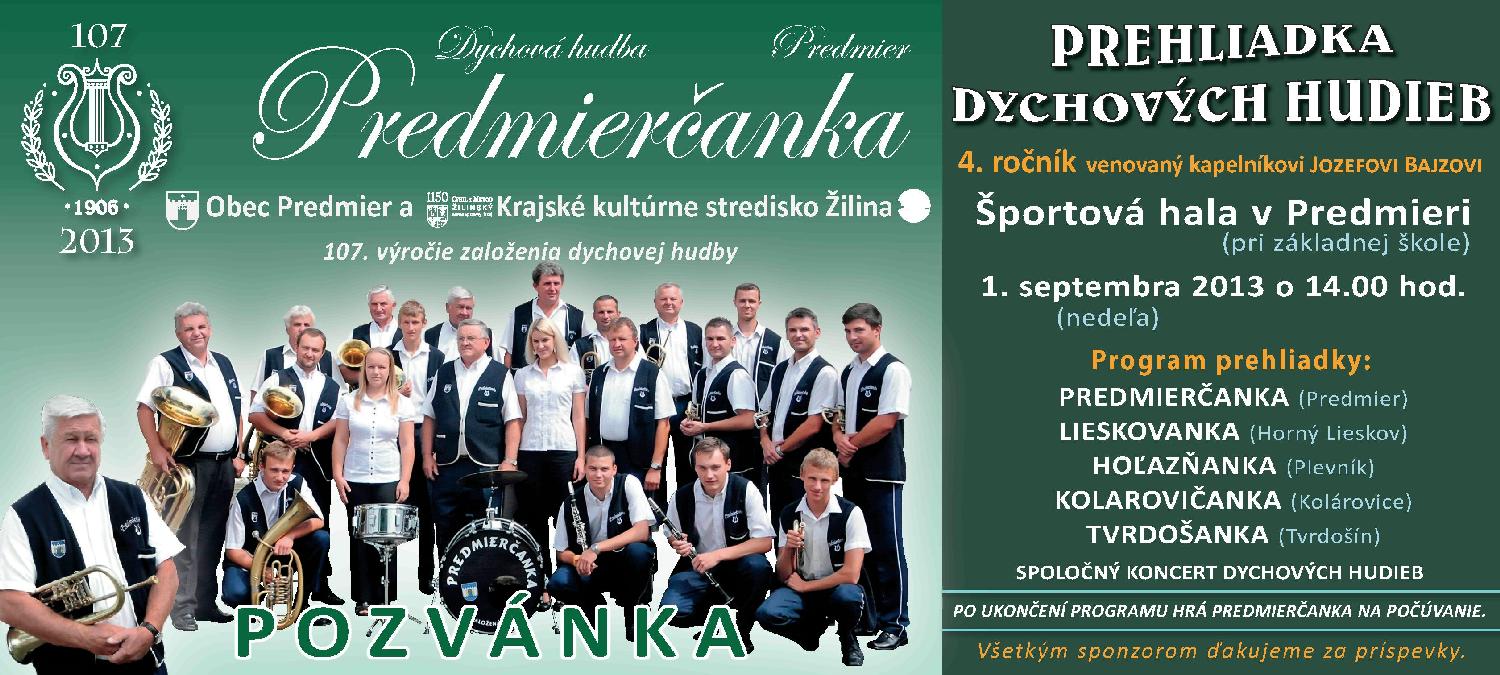 Srdečné pozvanie na prehliadku dychových hudieb do Predmiera.
