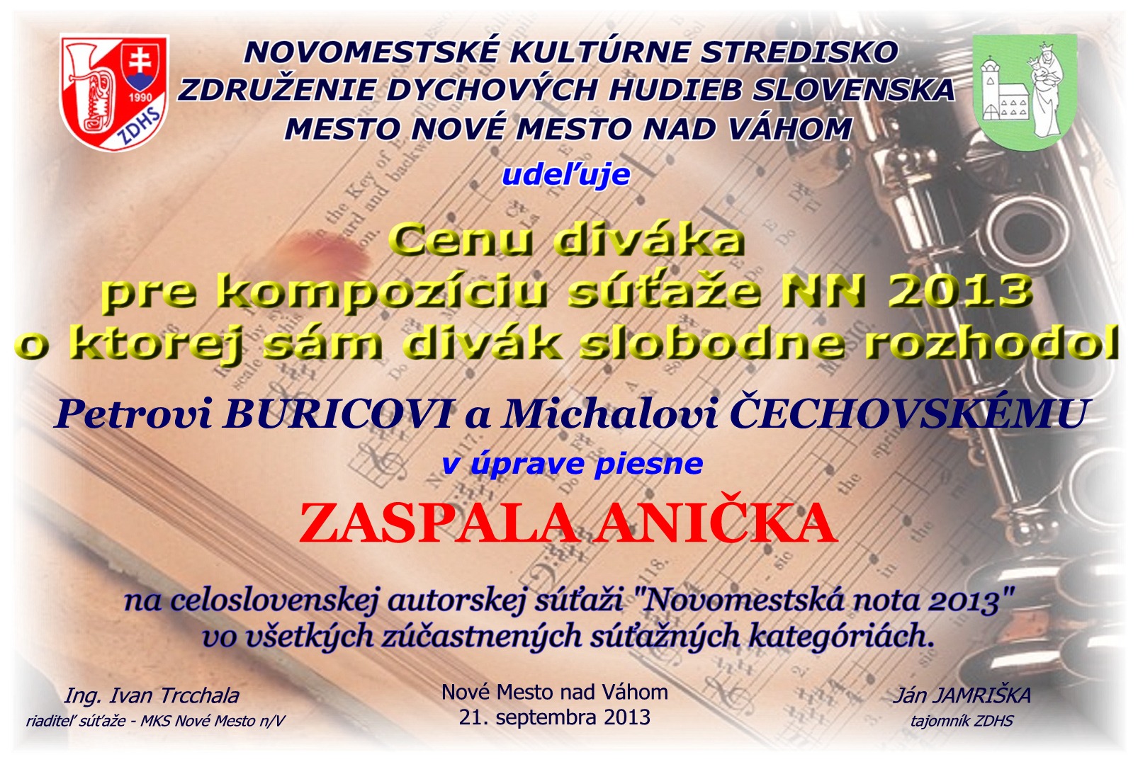 "CENA DIVÁKA SÚŤAŽNEJ SKLADBE na NN 2013"