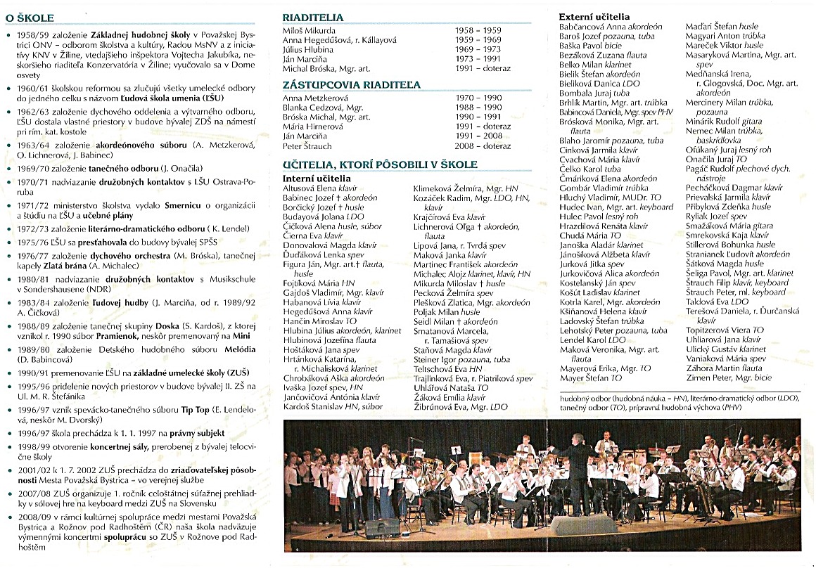 50 ročnú cestu ZUŠ v Považskej Bystrici je najlepšie vidieť na dvoch informáciami prekypujúcich stránkach bulletinu vydaného školou k tomuto výročiu.