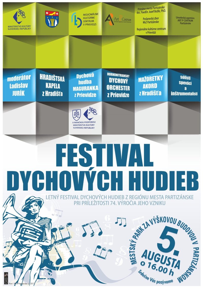 Tento rok sa konal druhý ročník festivalu dychových hudieb v Partizánskom. A tak sa v nedeľu 5.augusta v mestskom parku v Partizánskom opäť po roku zišli priaznivci tohto žánru zo širokého okolia. Festival pripravilo mesto Partizánske, Umelecká agentúra APC, Regionálne kultúrne centrum Prievidza a podujatie finančne podporilo Ministerstvo kultúry SR. Podujatie bolo zároveň venované 74.výročiu mesta Partizánske. Moderátorom programu bol známy zabávač a bývalý spevák Hradištskej kapely Laco Jurík z Dolných Vesteníc. Svoje poslanie si aj tentokrát svedomito splnil a okrem uvádzania jednotlivých kapiel svojím humorom či chvíľkami poézie vyplnil každé hluché miesto.