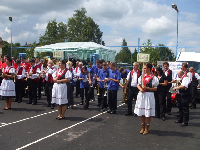 PLEVNÍK-DRIENOVÉ. Oslavy 15. výročia dychovej hudby Hoľazňanka a hody v obci začali slávnostnou svätou omšou. Pokračovali potom sprievodom účinkujúcich do športového areálu. Na oslavách sa zúčastnilo sedem ďalších dychových súborov. Nechýbalo vystúpenie mažoretiek, ktoré už akosi k dychovkám patrí. Vystupovali aj deti z folklórneho súboru Dúbravček a ľudová hudba Dúbravienka z Plevníka-Drienového.