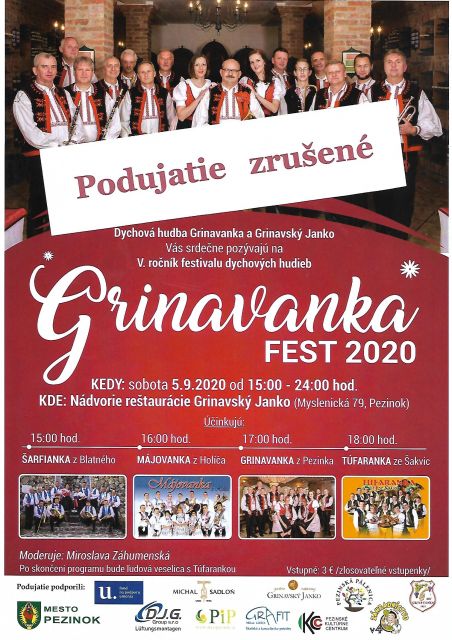 Vzhľadom na aktuálnu situáciu s COVID 19 a po zvážení všetkých potrebných hygienických opatrení pri poriadaní kultúrnych akcií definitívne RUŠÍME pre tento rok festival Grinavanka FEST 2020.